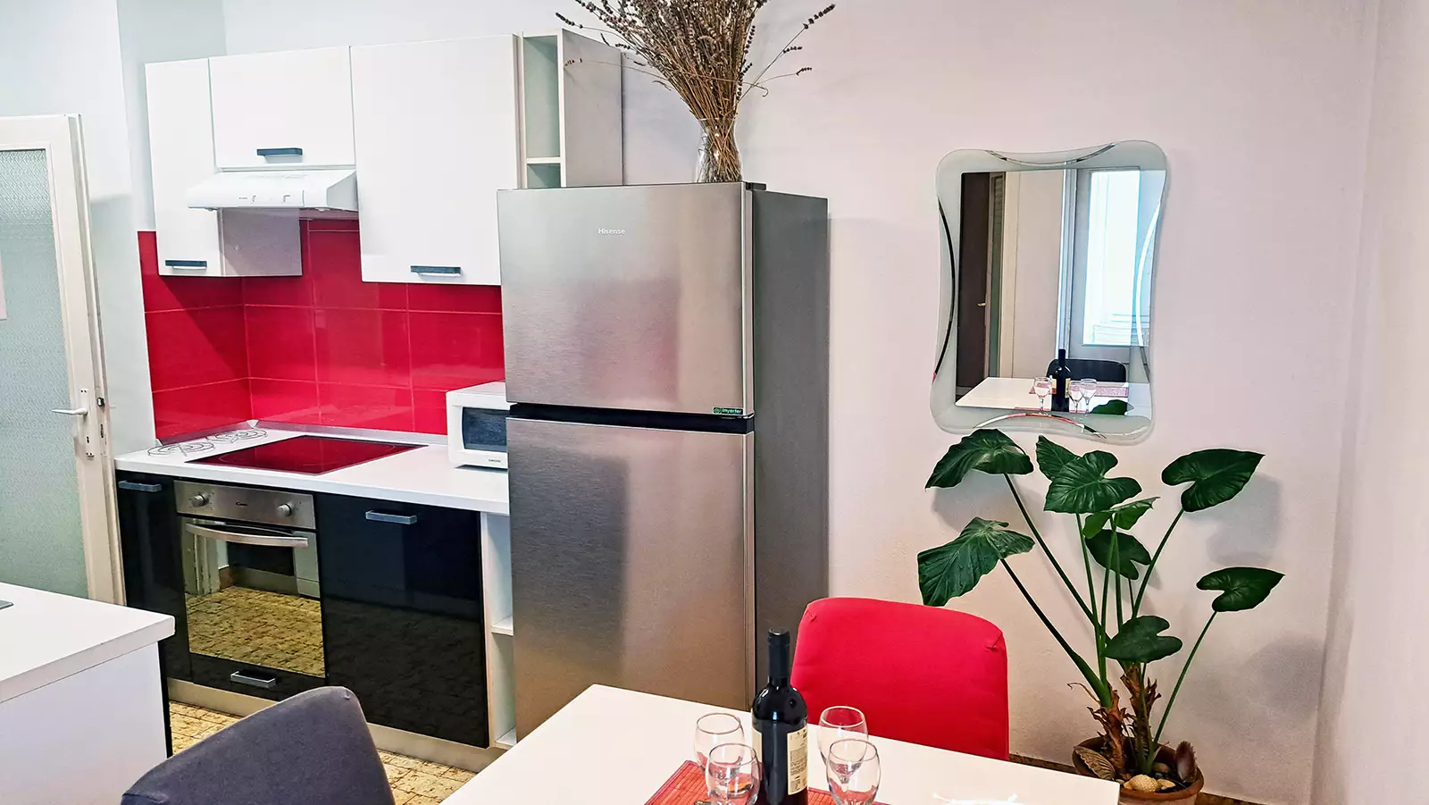 “Odlični domaćini, super veliki apartman s 2 spavaće sobe i 1 dnevnim boravkom, s pogledom na more s balkona. Apartman je odlično opremljen, ima sve što treba. Razne plaže su na 8 minuta i 15–22 minute hoda. Hvala na poklonu dobrodošlice – boci vina i voću. Bilo je baš lijepo 🧡”