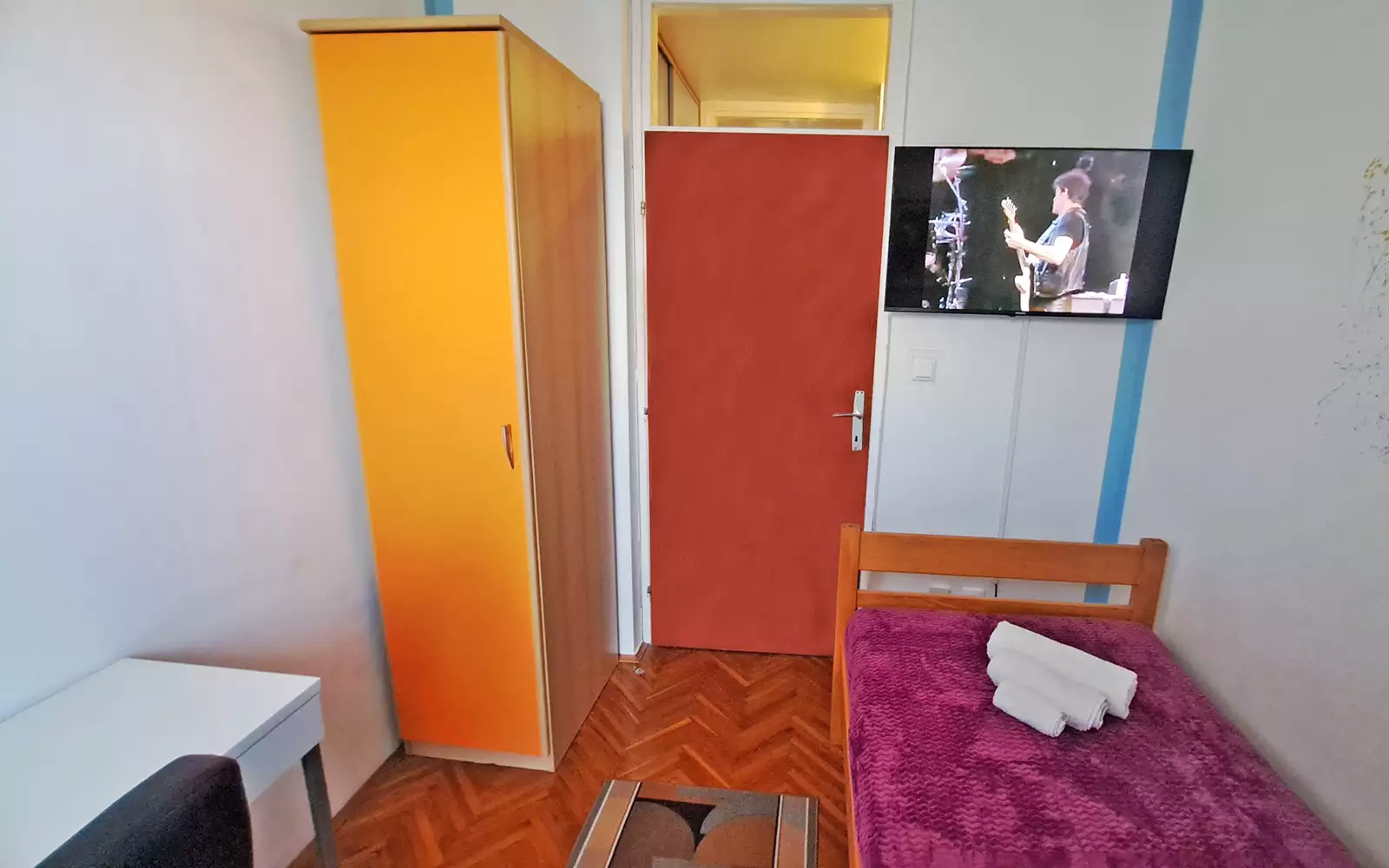 The apartment sleeps up to 5 guests (3+2). It has two bedrooms plus a sofa bed in the living room.